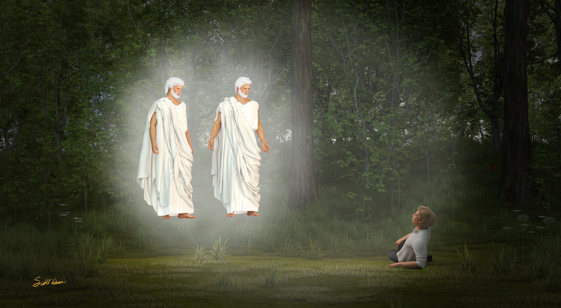 Joseph Smith sees the Father and Son in vision, an answer to prayer about which church to join